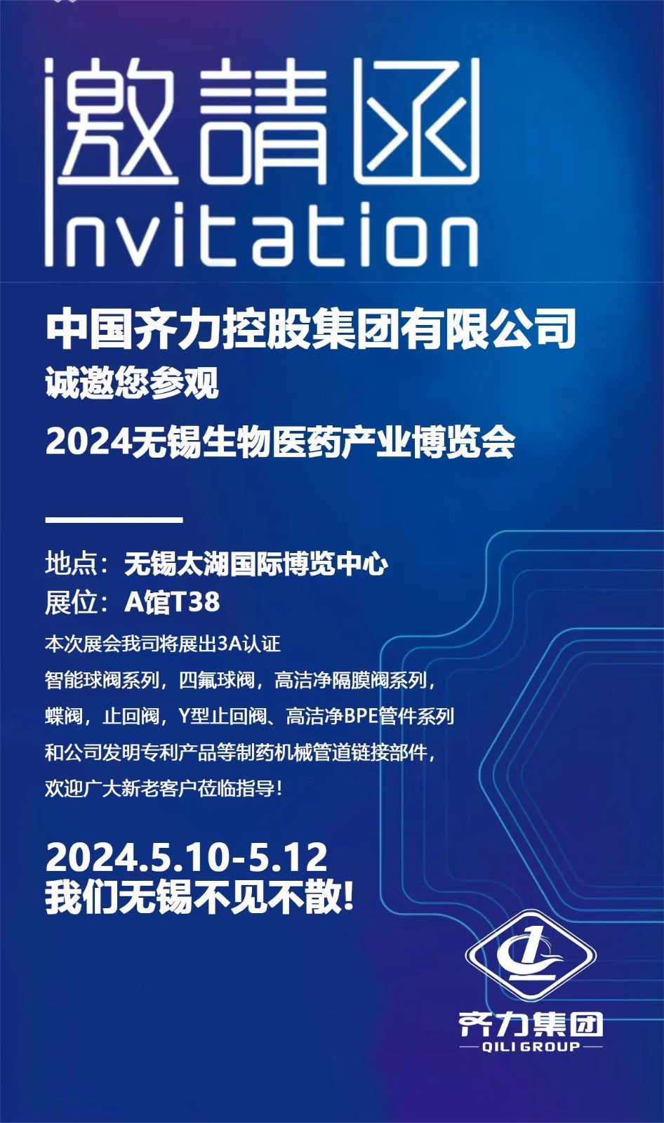 齊力參加2024中國無錫生物制藥工業展覽會
